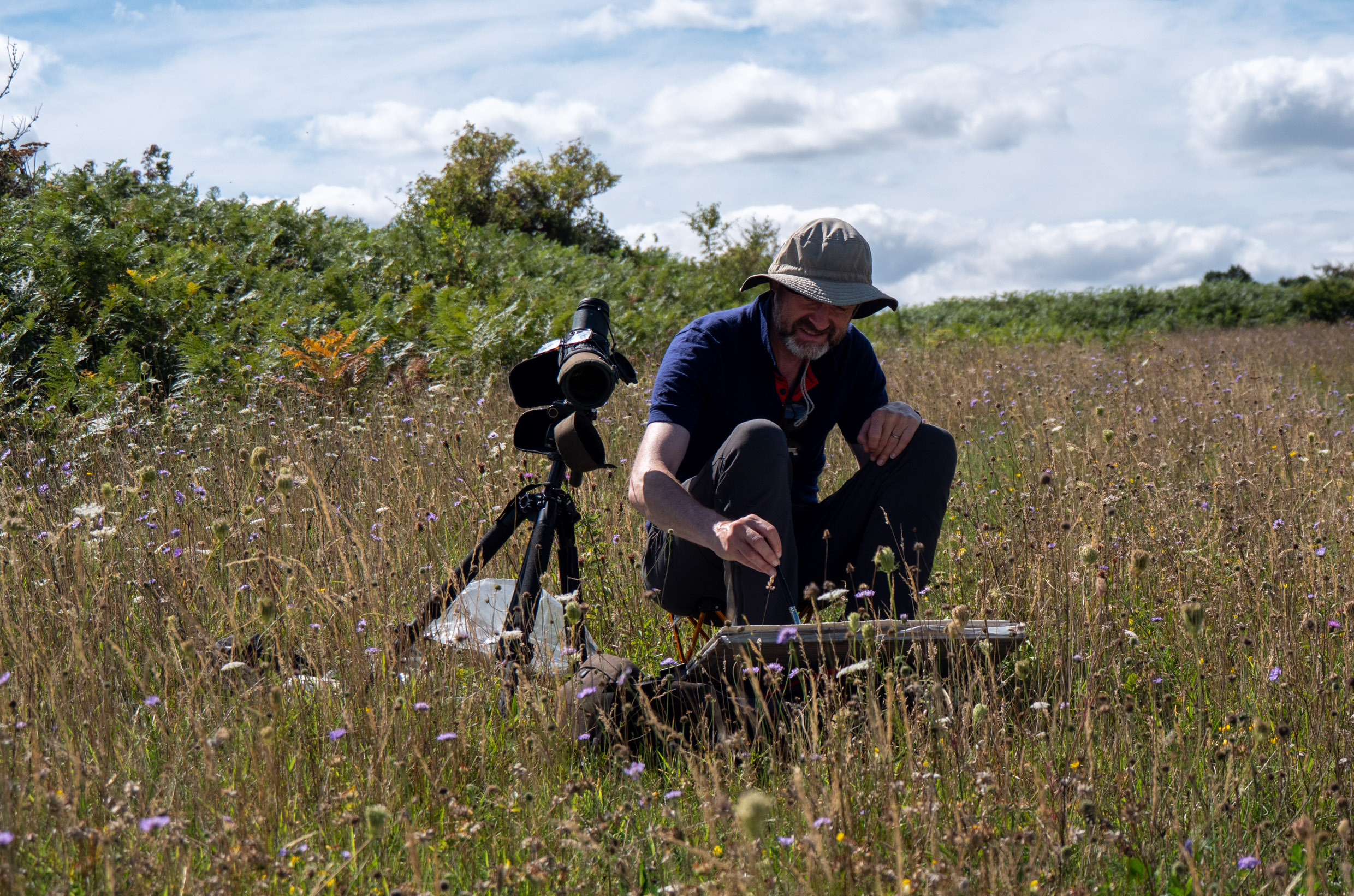 He lives and works in Edinburgh, Scotland, and draws heavily on the beautiful local landscapes and wildlife for inspiration. Preferring to work in the field from direct observation, his practice frequently takes him armed with watercolours to tackle the seabird colonies found on the islands of the Firth of Forth and the Lothian coastline. Nye places as much importance on the colours, sounds and textures of the landscape as the birds and plants.
