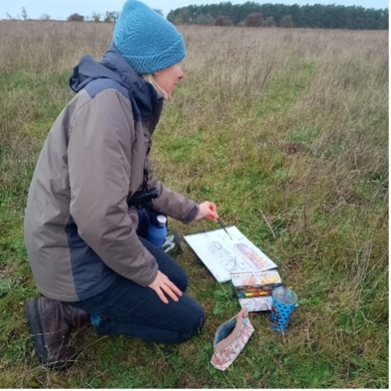 It is a project that demands regular visits to express the feel of the landscape in all its changing moods through the seasons with an opportunity to capture a particular species of plant or animal whose presence on the heath may only be fleeting. Friends’ Co-ordinator and Massingham Heath lynchpin Tim Baldwin, is so well acquainted with the area and he seems to be continually making new species’ discoveries as the process of rewilding continues. As well as all this, Tim is often on site to greet arrivals and share the latest news and point out what’s around.